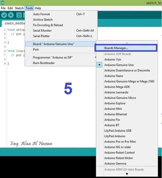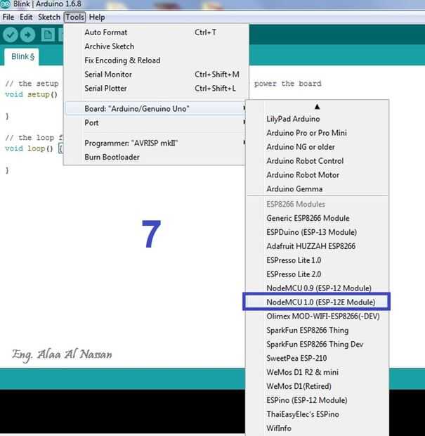 7. Vaya a herramientas > menú Tabla, seleccione la tabla ESP8266.