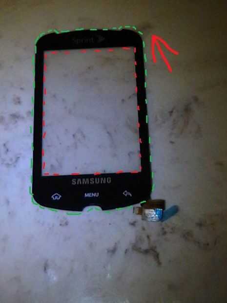 Retire las dos piezas de película protectora de la parte posterior del digitalizador y descarte. Si la pausas de pestaña (lo mío), uso el solo filo navaja y cuidadosamente Deslice bajo el archivo de protección para obtener comenzó y desprenderse. Habrá pegamento alrededor de los bordes de la parte posterior del digitalizador. No toque el adhesivo y no conseguir huellas dactilares en la parte posterior del digitalizador. Si usted recibe huellas dactilares en la parte posterior del digitalizador, limpiar muy cuidadosamente con una toalla de papel con un poco de limpiacristales y alojarte fuera del adhesivo alrededor del borde posterior del digitalizador.