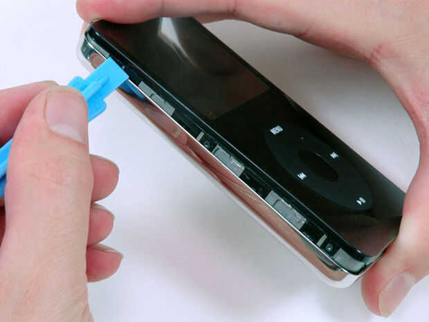 No tomo una foto de la separación de casos real, pero con la foto del iPod anterior, debería poder hacerse una idea de cómo proceder con este paso. Además, esto sería un buen momento para asegurarse de que usted se conecta a tierra para no destruir los delicados circuitos con electricidad estática. Con la herramienta de apertura de la carcasa, comience en uno de los lados y separar la cubierta posterior del teléfono con los dedos para evitar que la tapa ajuste nuevamente en su lugar. Una vez separada la parte de atrás del teléfono, póngala a un lado e ir al siguiente paso.