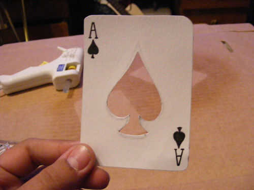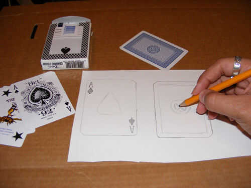 Si usted quiere, sólo puede cortar hasta algunos viejos jugando a las cartas, pero me gusta personalizar las cosas. Tomar la cartulina y esbozar su diseño. No dude en usar referencias (lo hice!), pero trata de poner un poco de ti mismo en él. Necesitas dos tarjetas de igual tamaño, uno para el diseño de la espada (o cualquier tarjeta/traje elija) y al superponerse y recorte más adelante. Cuando hayas finalizado el diseño, pasar con sus plumas de dibujo y, si quieres realmente tener permanecer energía, ir sobre ella con un acabado acrílico fijador o spray.
