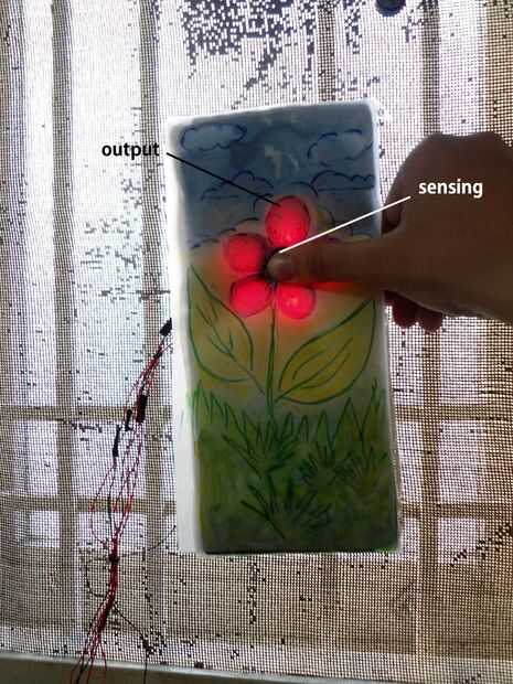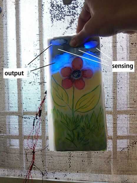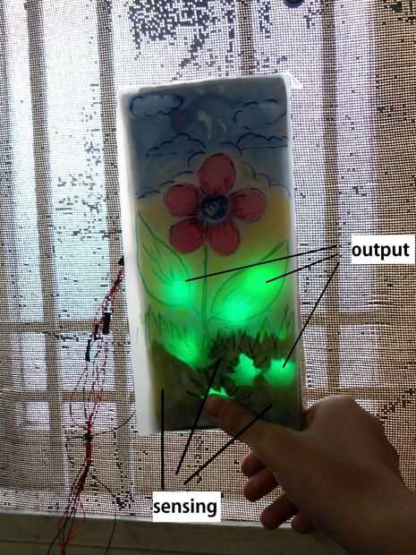 La razón es que donde u son touch sensing, u sería b agregar papel de aluminio o algunos otros hoja de metal delgada en la superficie o debajo. La hoja de papel no permitirá que la luz pase a través!