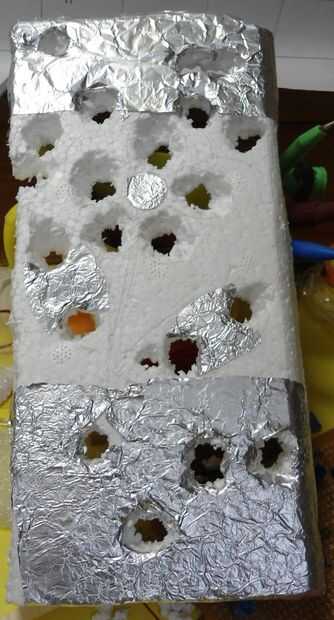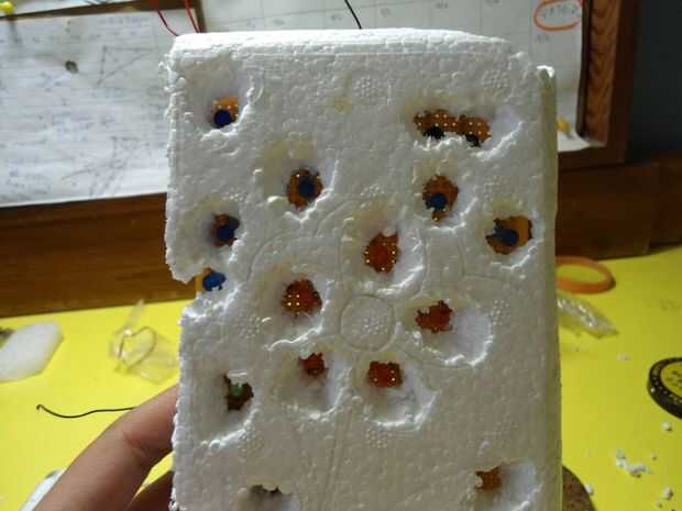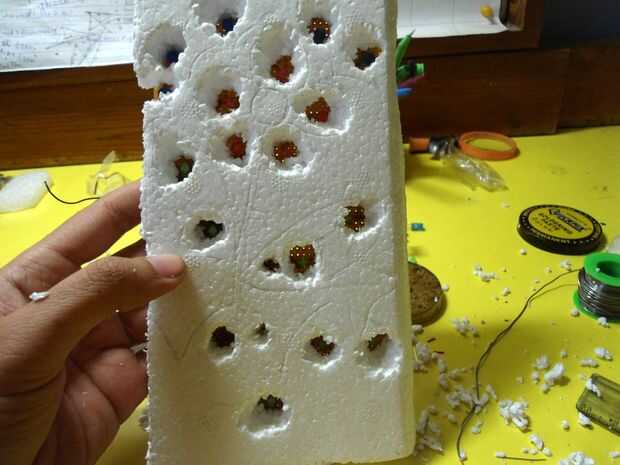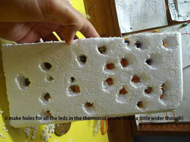 Haga agujeros en el thermocol a través del cual los leds pueden espiar a través de.