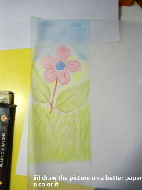 Boceto de la imagen en el papel mantequilla y colorearlo. [Usé colores lápiz]