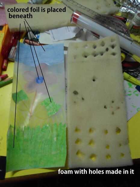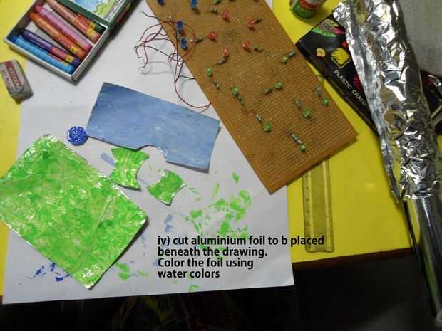 Ahora viene lo complicado. Ponemos una espuma entre el thermocol y el butterpaper que asegura que normalmente las 2 hojas [una debajo el papel mantequilla y la otra sobre el thermocol] no entran en contacto. Al pulsar, los dos entran en contacto a través de los pequeños agujeros en la espuma, y es equivalente a la acción de contacto que realizamos al principio.
