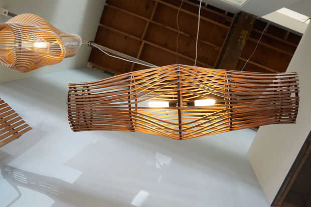 Cuando a partir de esta pieza que no estaba claro si funcionaría en todos - algunos de la flexión y torsión de las piezas era muy radical y hecho algunos fractura durante el proceso y tuvo que ser reemplazado. Esto fue algo bueno ya se pretendía explorar los límites y capacidades de material. Cuestiones de alineación inesperada vinieron para arriba con algunas de las piezas que tenían gran variación en torcer de una costilla a otra - la pieza simplemente no sentaba muy bien en su ranura. Parecía estar bien en la composición general, sino un 'perdedor' método para controlar o fijar las hebras podía investigarse. Por último, las longitudes de los hilos necesitadas variaron muy poco y algunas de las zonas donde hubo más flexión/desplazamiento requerida filamentos más largos! 48" fue la longitud máxima del tubo de vapor y para que algunas de las hebras quedó corto... en una futura versión, idealmente filamentos más sería utilizados y cortar después de ser ensamblados!
