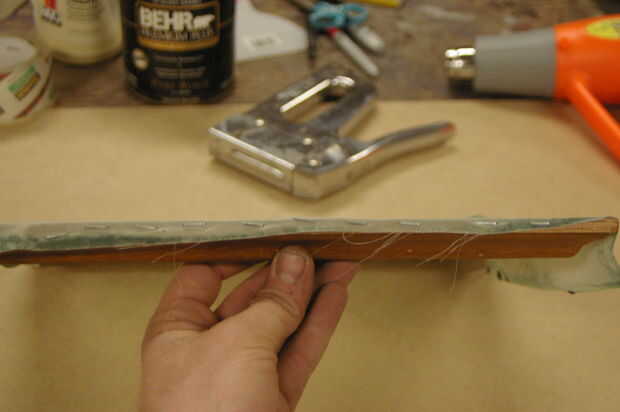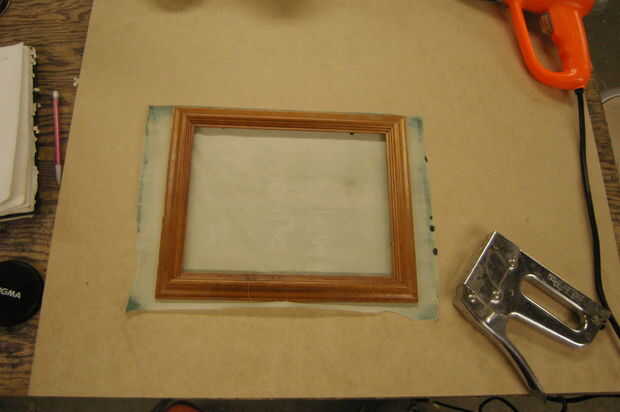 Una vez que hay algo de tensión en la pantalla, trabajar lentamente alrededor de la estructura, estirando y grapado hasta que toda la pantalla está uniformemente tensada, con curiosas ondulaciones, golpes ni manchas flacidez.