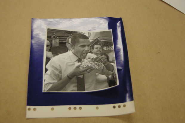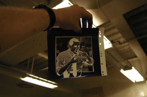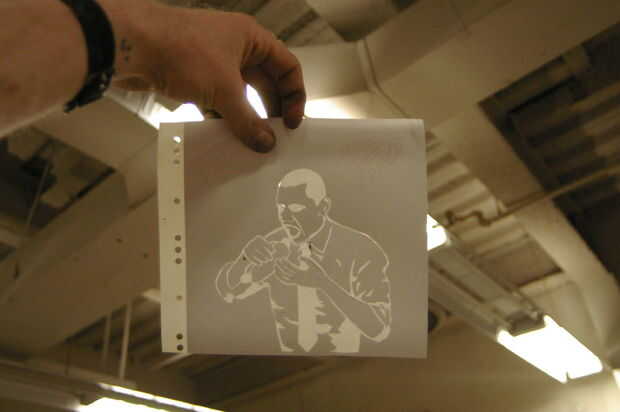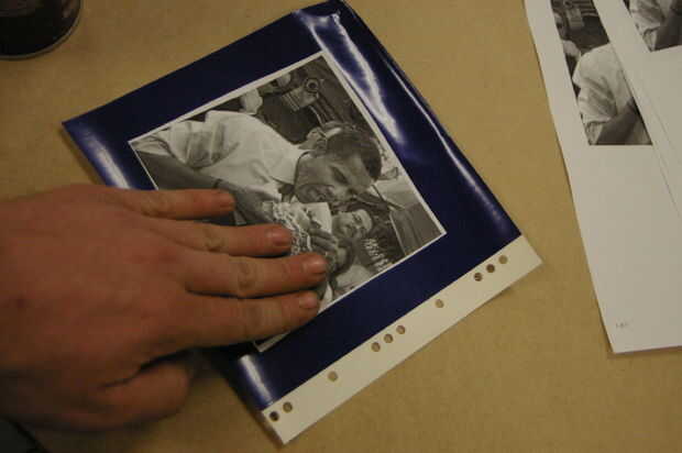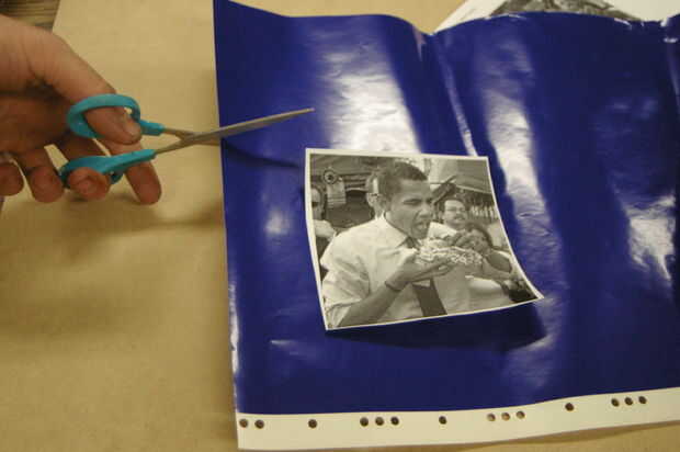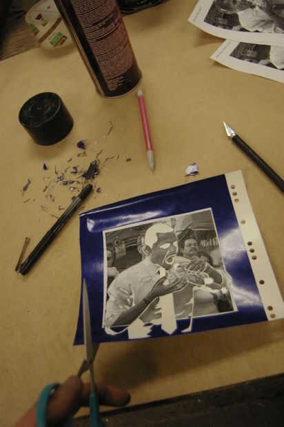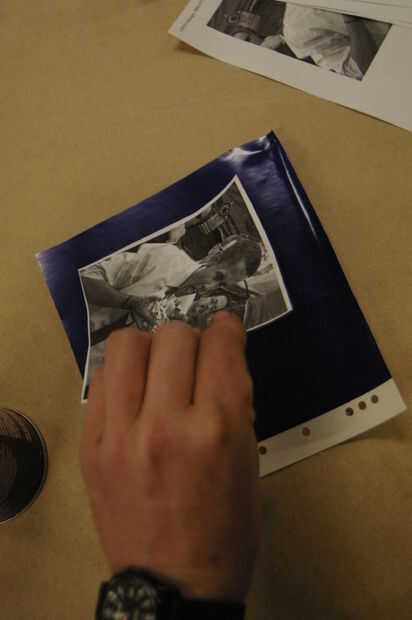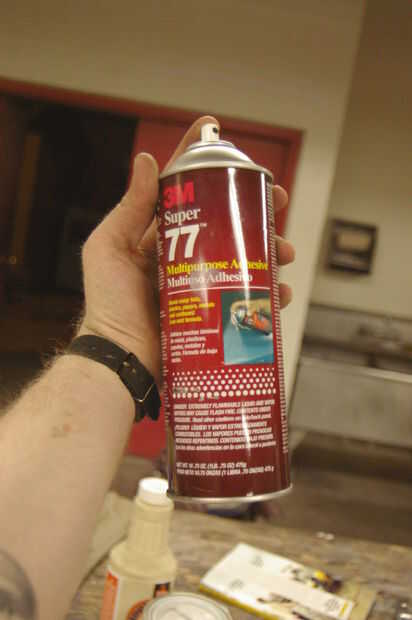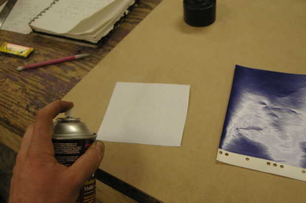 Utilizar el adhesivo en aerosol (no demasiado) para pegar la imagen sobre el vinilo.