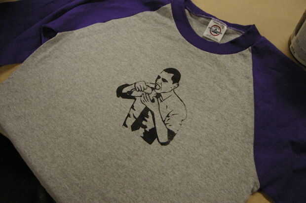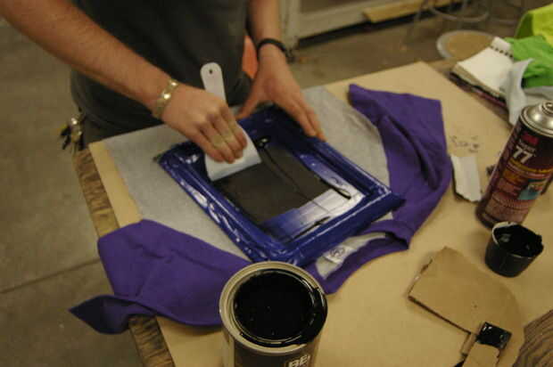Usando la cuchilla plástica de masilla en un t de ángulo de 45 grados la pantalla, tire firmemente la tinta a través de la imagen.