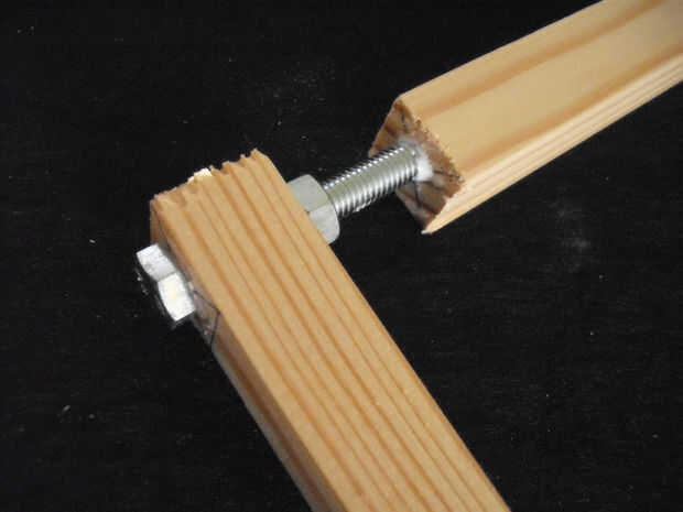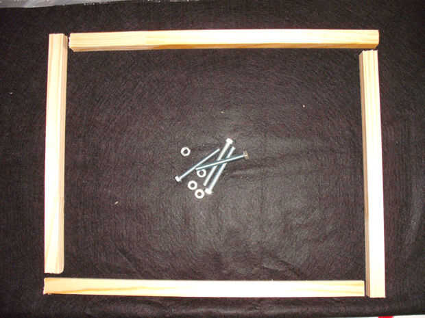 cada esquina está conectada por el perno y tuerca y pegado al orificio.