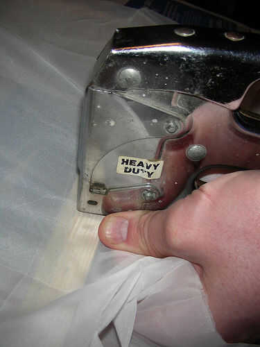 A continuación hacer el extremo o el extremo inferior. Misma técnica que el anterior. Cuando haya terminado, la pantalla debe ser uniformemente apretados y enseñan como una cabeza de tambor.