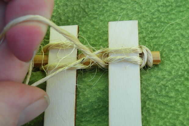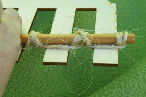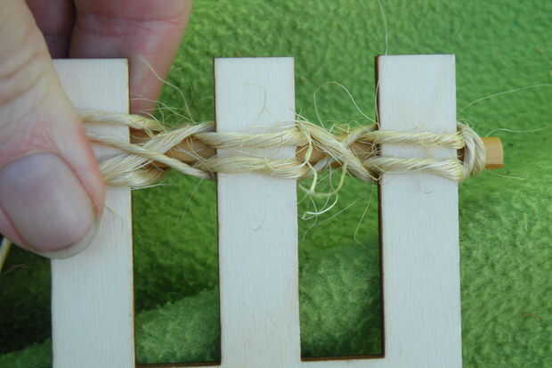 Mantiene la tensión en la cuerda, pasar los extremos bajo el último diente.