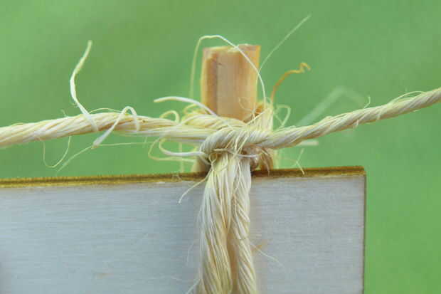 Todo lo que necesitas hacer ahora es tie off - enrollar los extremos debajo y sobre el tornillo un par de veces, luego termine con un par de nudos por todo lo alto.