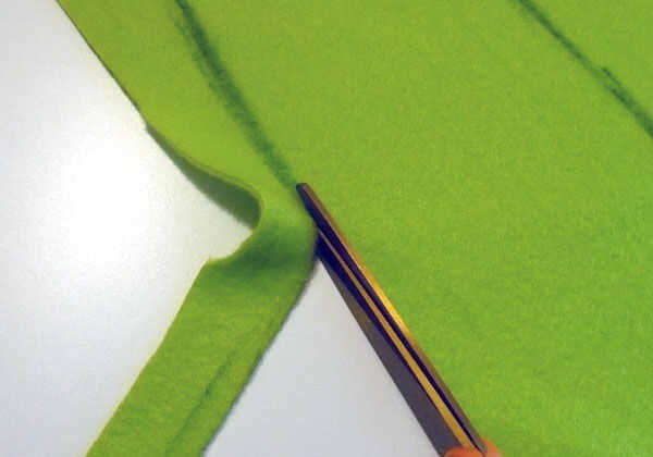 A la línea de la nariz, cortar dos piezas de vellón que empareja y me cubrió en (ver fotos 8 y 9).