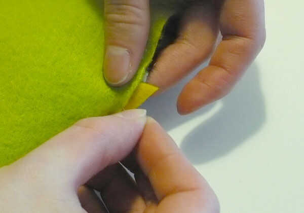 En este punto si desea agregar algunas piernas/brazos/alas, corte de fieltro y la clavija entre las capas de dos lana.