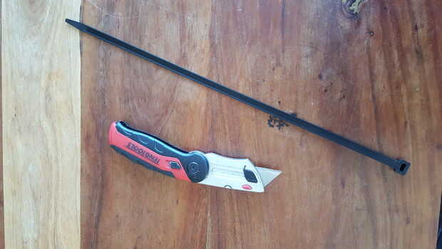 cortes deben ir desde el extremo de la cerradura (donde es el asa de plástico) hacia el cono.
