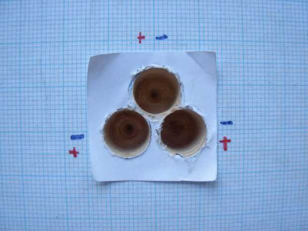 Tome el taladro eléctrico y el taladro de 10mm y hacer 3 agujeros en la madera, trate de hacerlo precisamente como sea posible. Es por eso que pega el plano impreso, por lo que sería preciso.