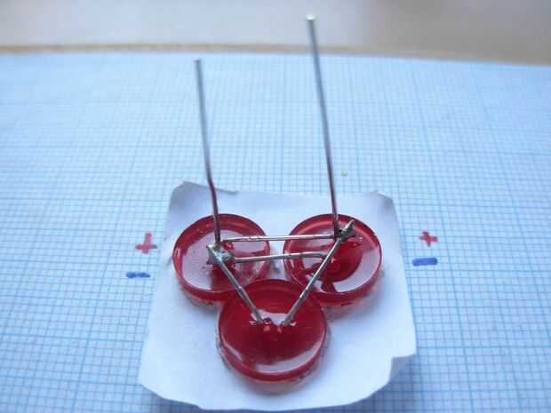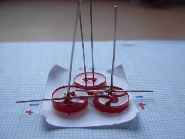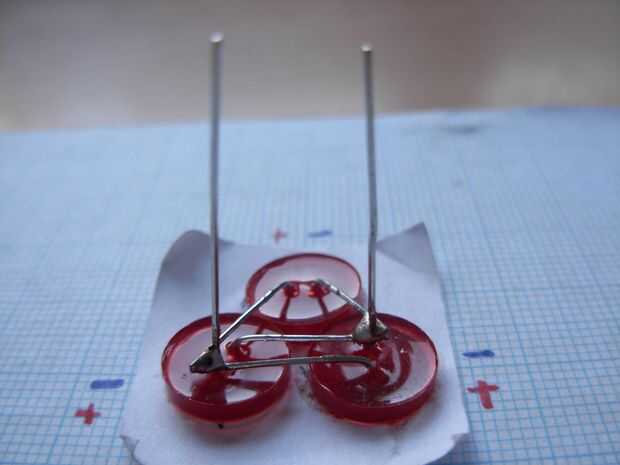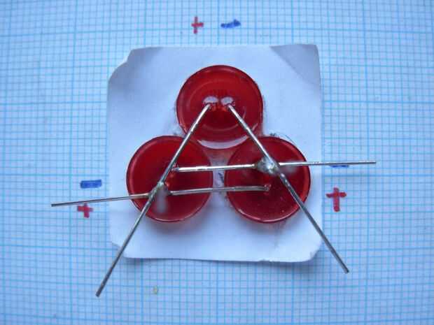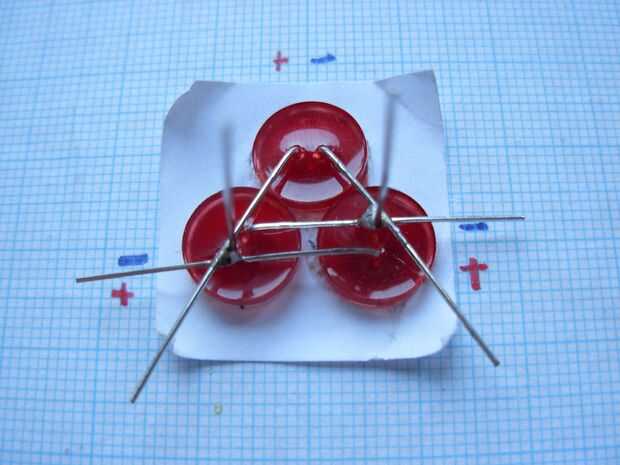 Tomar el tercer LED y poner en el marco para que el pin positivo (más) caras el pin positivo de pie de 1 LED, y el pin negativo (más corto) enfrenta al pin negativo permanente del LED 2. (imagen 9 y 10)