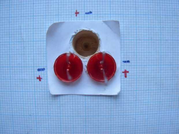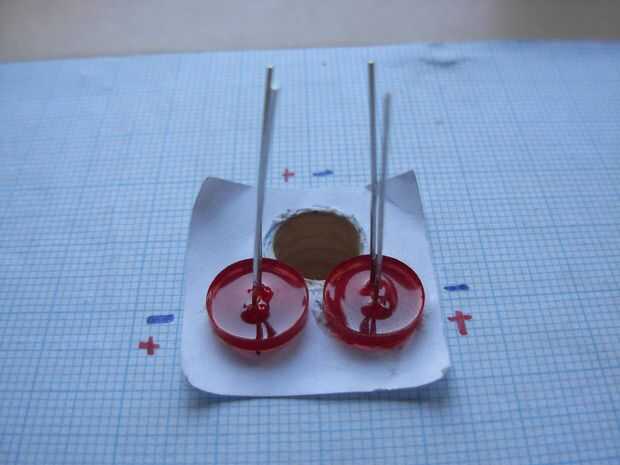 En primer lugar la estructura de madera y LEDs, al igual que en foto 1 y 2, para que el pin positivo del LED 1 afronta el pin positivo de LED 2 (el pin más largo) y el pin negativo del LED 1 afronta el pin negativo del LED 2 (corta perno).