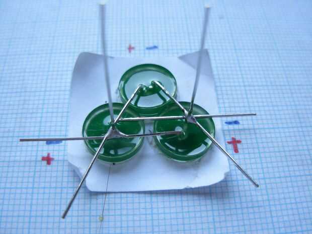 Fotografías 5 muestra un soldado formación ápice verde LED de los pines no utilizados no cortan todavía.