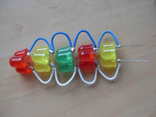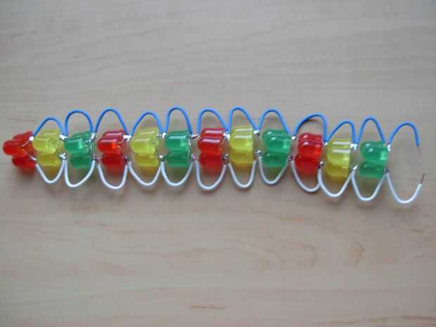 Y desde aquí sólo tienes que repetir las prosas y otra y otra vez. Soldar un cable a cada pin del LED link 2 que va hasta el LED link 3 y luego soldar los cables del LED link 2 a los pernos en el LED link 3. Otra vez la soldadura un cable de cada pin del LED link 3 que va hacia el LED link 4 y soldar los cables que vienen de LED link 3 a los pines en el LED link 4 y así sucesivamente y de... (cuadro 10, 11 12 y 13 y 14)
