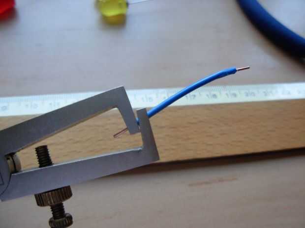 Ahora que cortamos la cantidad de cables que necesitamos es tiempo para el aislamiento de los extremos de los cables. Esto lo haremos tomando el pelacables de aislamiento y pelar unos 7mm de aislamiento de los extremos de los cables (Foto 3). En todos los cables se corta (Figura 4).