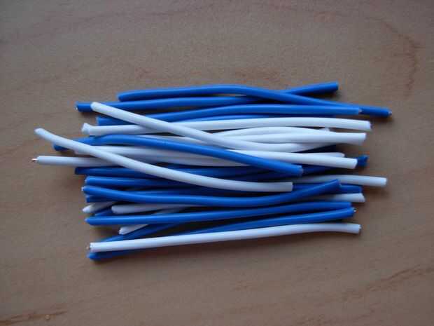 En primer lugar, permite preparar el cable. Tome el cable y cortar en trozos de 5 cm (cuadro 1). Repetir esto hasta llegar a la cantidad de 5cm los cables te necesita (cuadro 2).