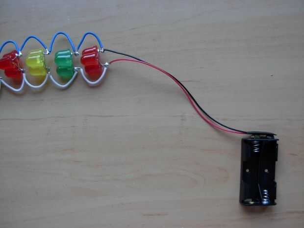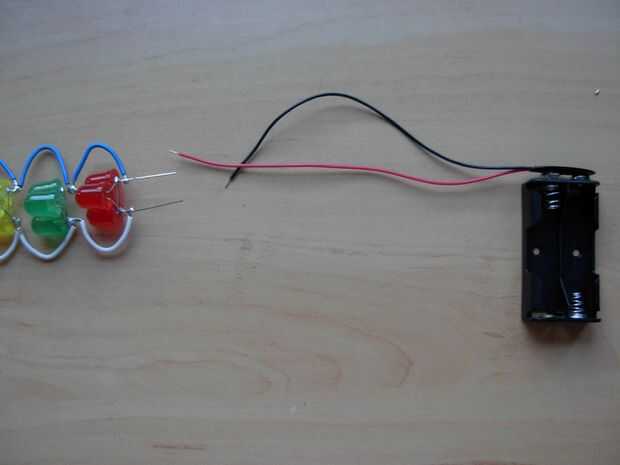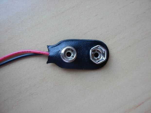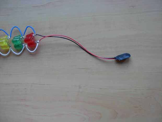 Cuando usted soldar todos su LED link, el último paso es soldadura el 9V batería clip o soporte de la batería hasta el último pins del último eslabón de LED. (imagen 1 y 2)