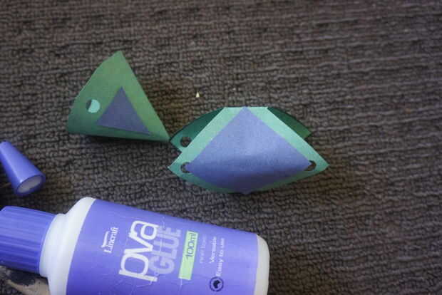 Pegue los diamantes en la parte superior de las secciones. Pegar el triángulo en la parte superior del cono.
