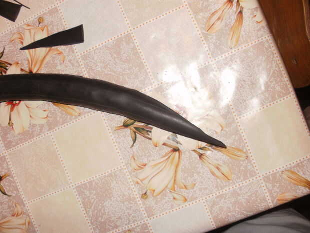 el título lo dice todo. Es una vaina de cuchillo hecha de un tubo interno. Incluso puede deslizar sobre su cinturón.Paso 1: materiales Se necesita:1-bicicleta llanta (partido longitudinalmente)1-carrete de hilo (yo usé hilo de lona)1-aguja1-cuchillo
