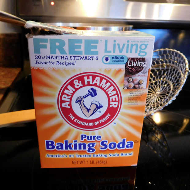 2. Añadir 1/4 de taza de bicarbonato de Sosa lentamente (un poco a la vez). Si se añade todo a la vez el agua se desborde el bote... PROMETO!!!!!!