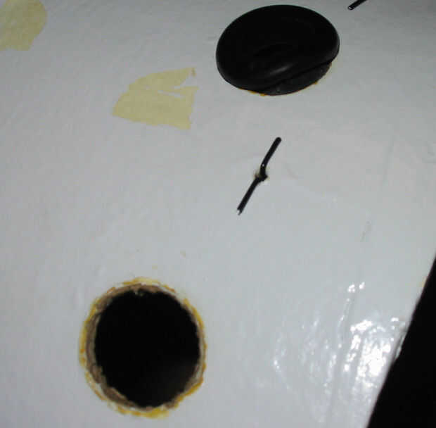 Se perforaron los agujeros para el Sonar y arandelas de goma fueron insertados para sostener los sonares. Adicional de cinco agujeros fueron perforados en la parte posterior para los botones y un LED.