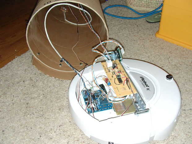 El tubo se enrosca en la base con dos tornillos en la parte que van unas ranuras en los soportes montados sobre el crear con las piezas de mi kit de robótica VEX. La parte posterior del tubo tiene un labio extra que sumerge el extremo posterior de la carga de la bahía, que ayuda a prevenir movimientos balanceo adelante-atrás. Los dos tornillos que son simples pero lo suficientemente fuerte como para poder recoger el bot por el tubo y colocarlo donde quieras.