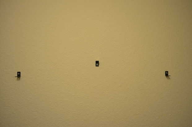 2) poner el signo en la pared en un soporte mientras sostiene en su lugar. Use el nivel para nivelar (duh) y marque el punto para el segundo eje de pedalier.