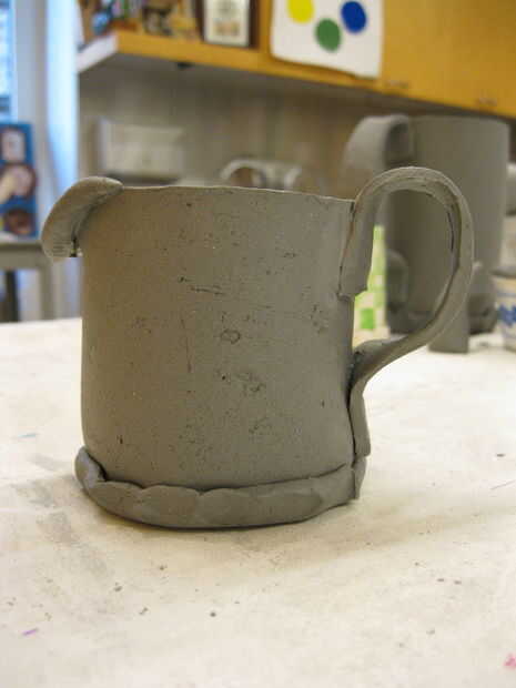 rodillo de arcilla para la manija, cortar mango tamaño ligeramente más pequeño que el pote del té, aproximadamente 3/4 de ancho y tal vez 5" de largo puntuación, resbalón y adjuntar a la misma como manija del pote del té.