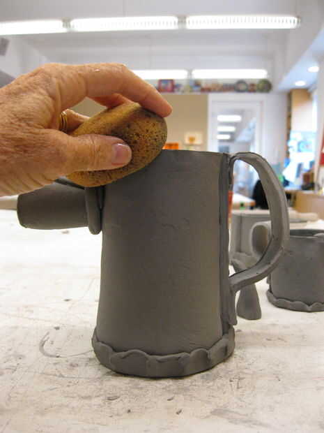 Al día siguiente cuando las piezas son "sacos" limpiar las asperezas con una esponja.