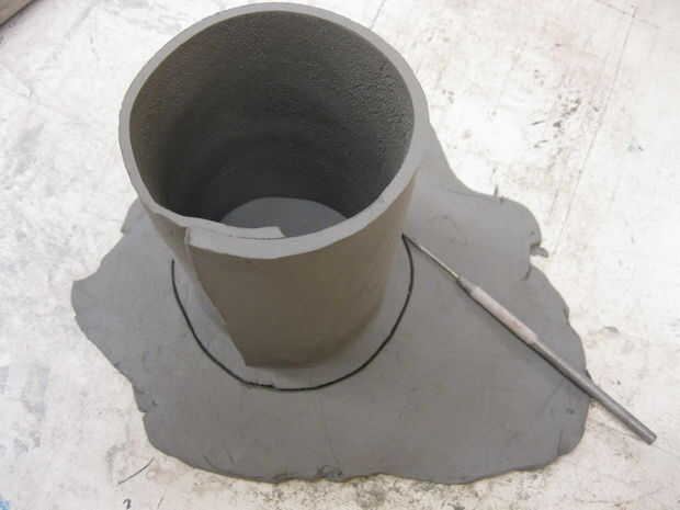 rodillo de arcilla para la parte inferior del cilindro. Grandes suficiente colocar cilindro en el centro de la arcilla y corte alrededor de la base dejando aproximadamente 1/2 pulgada.