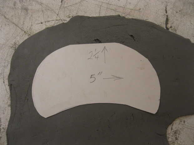 rodillo arcilla para surtidor, sacar una plantilla, cortar la forma de pico.