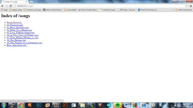Escriba la dirección IP de Edison en la barra de direcciones del navegador. Usted verá el reproductor y la lista de canciones en la página.