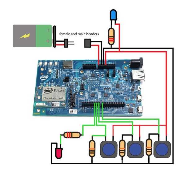 La batería puede unida y separada por encabezados femeninos y masculinos, siendo esencialmente el interruptor on/off. Cuando el Edison está siendo utilizada como un servidor de la canción, este circuito no es necesario y un adaptador de pared se puede utilizar para alimentar el tablero en su lugar.