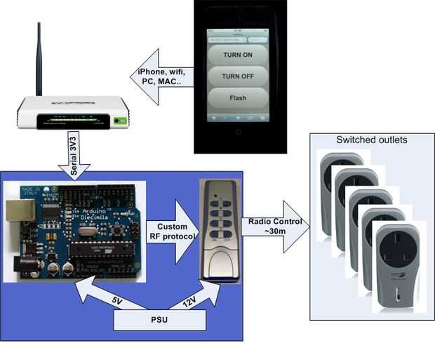 Este proceso con un microcontrolador, el AVR convierte al Protocolo RF, inyecta en el RF remoto, que controla las salidas de RF.
