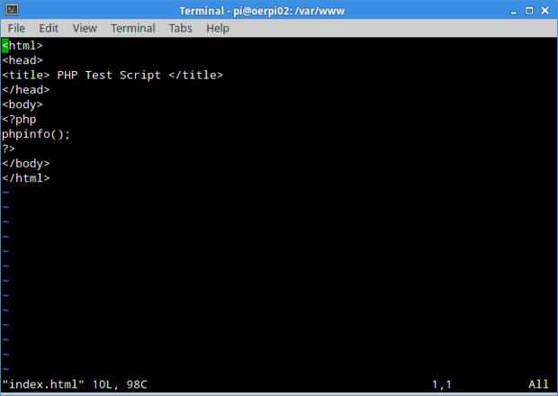 $ sudo nano phpinfo.php
