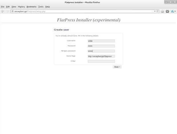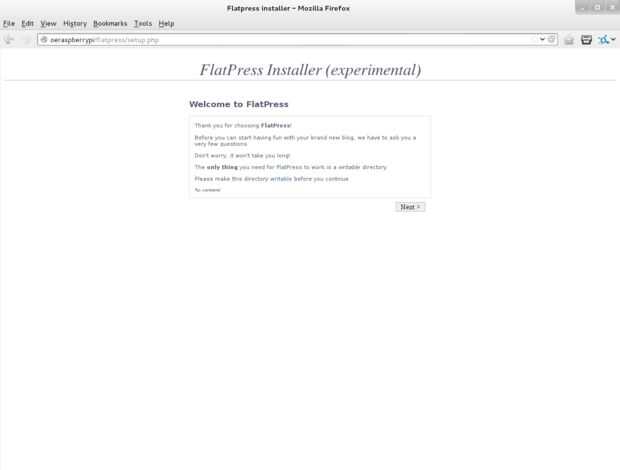 Ahora apunte su navegador a nombreservidor/flatpress y sigue las instrucciones.