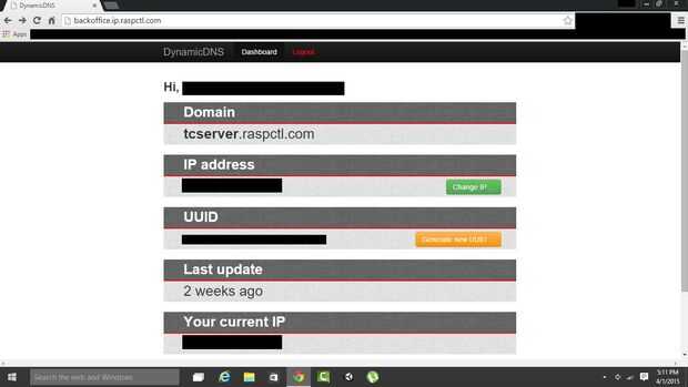 Una mala noticia: su IP cambia de vez en cuando. Le tienes que cambiar todo lo que trabajado para que coincida con cada nueva IP que se obtiene. Para detener esto, te recomiendo conseguir un DNS dinámico. Establecer tu IP reservados no enteramente solucionará su problema. Usted puede Google 'DNS dinámico gratis' y obtendrá las cargas de servicios ddns gran. Sin embargo, prefiero servicio DDNS de RaspCTL. Es gratis, específico para la frambuesa Pi (aunque no tiene una diferencia por lo que usas para), y es muy rápida y fácil de registrarse y utilizar.