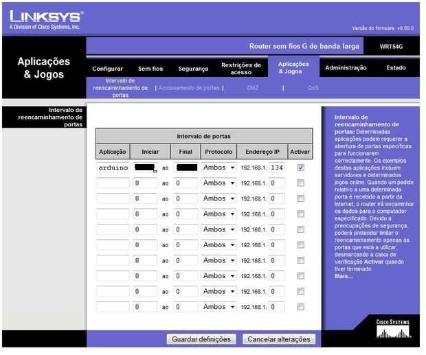 Este sitio le puede ayudar a base de "Puerto adelante" en su enrutador o módem. http://portforward.com/English/routers/port_forwarding/Linksys/WRT54G/default.htm