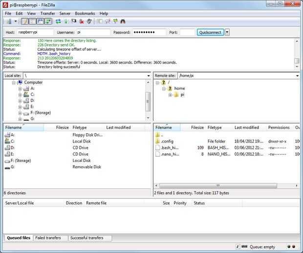 Ahora eres capaz de conectar con el Pi de frambuesa con un cliente FTP, usando la siguiente información: