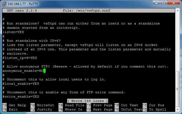 anonymous_enable = YES Cambio a anonymous_enable = NO