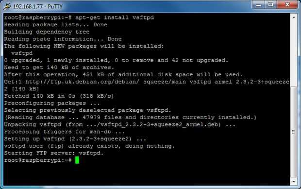 Escriba en "sudo Apto-conseguir instalar vsftpd" y pulse retorno (Enter)