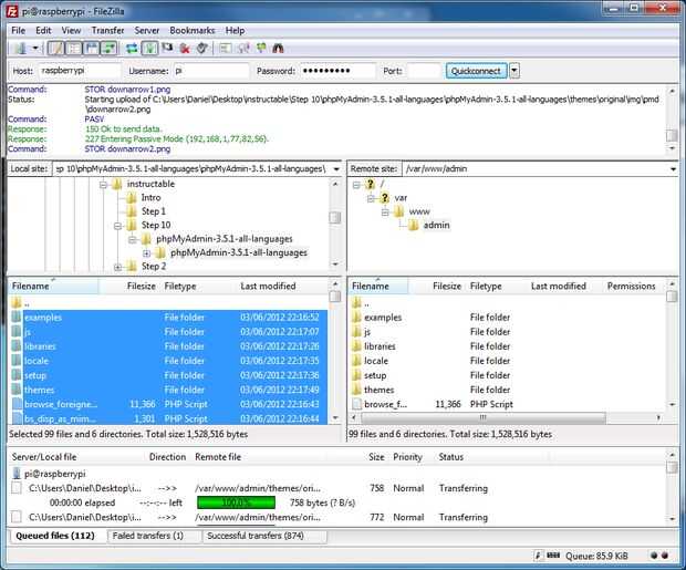 El último punto, comience a su cliente FTP, luego conectarse su frambuesa Pi, copia los archivos a través de y listo.