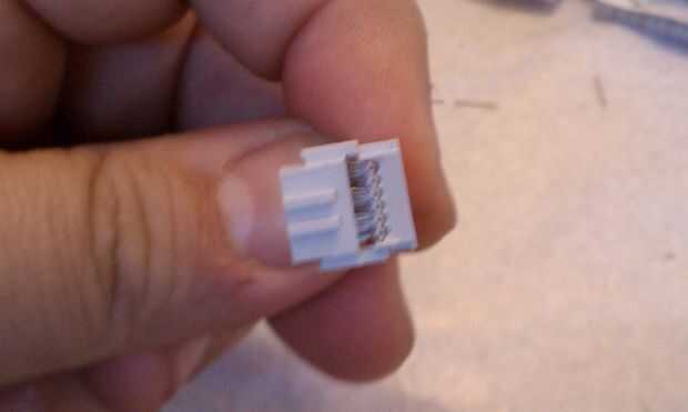 Si no tienes tres manos, primero puede soldar una gota de soldadura en cada pin. Entonces cada uno de los cables pelados con un poco de soldadura de estaño. Para conectar el cable, solo se pueden tocar y el soldador a la gota de soldadura en cada pin.