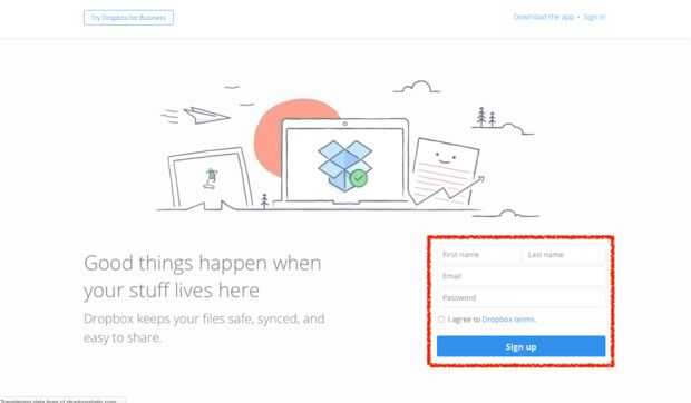 Ahora tendrá que inscribirse en Dropbox y descargar su aplicación https://www.dropbox.com/